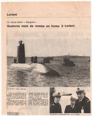 Article de presse à l'occasion de l'arrivée du sous-marin DAUPHIN à Kéroman (Lorient pour son dernier grand carénage en Mars 1989 ( Benoît BOULANGER NARVAL - 800 tonnes - SNLE M4)